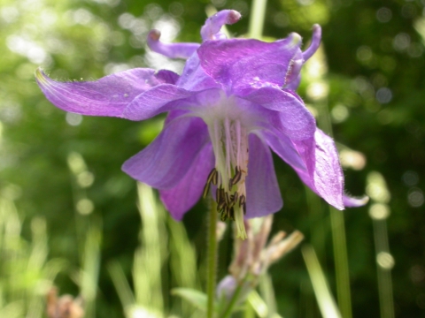 The bonnet-shaped, violet-blue flowers of Columbine can be spotted in damp areas in woodlands and in fens. It is also an attractive and much-loved garden plant.